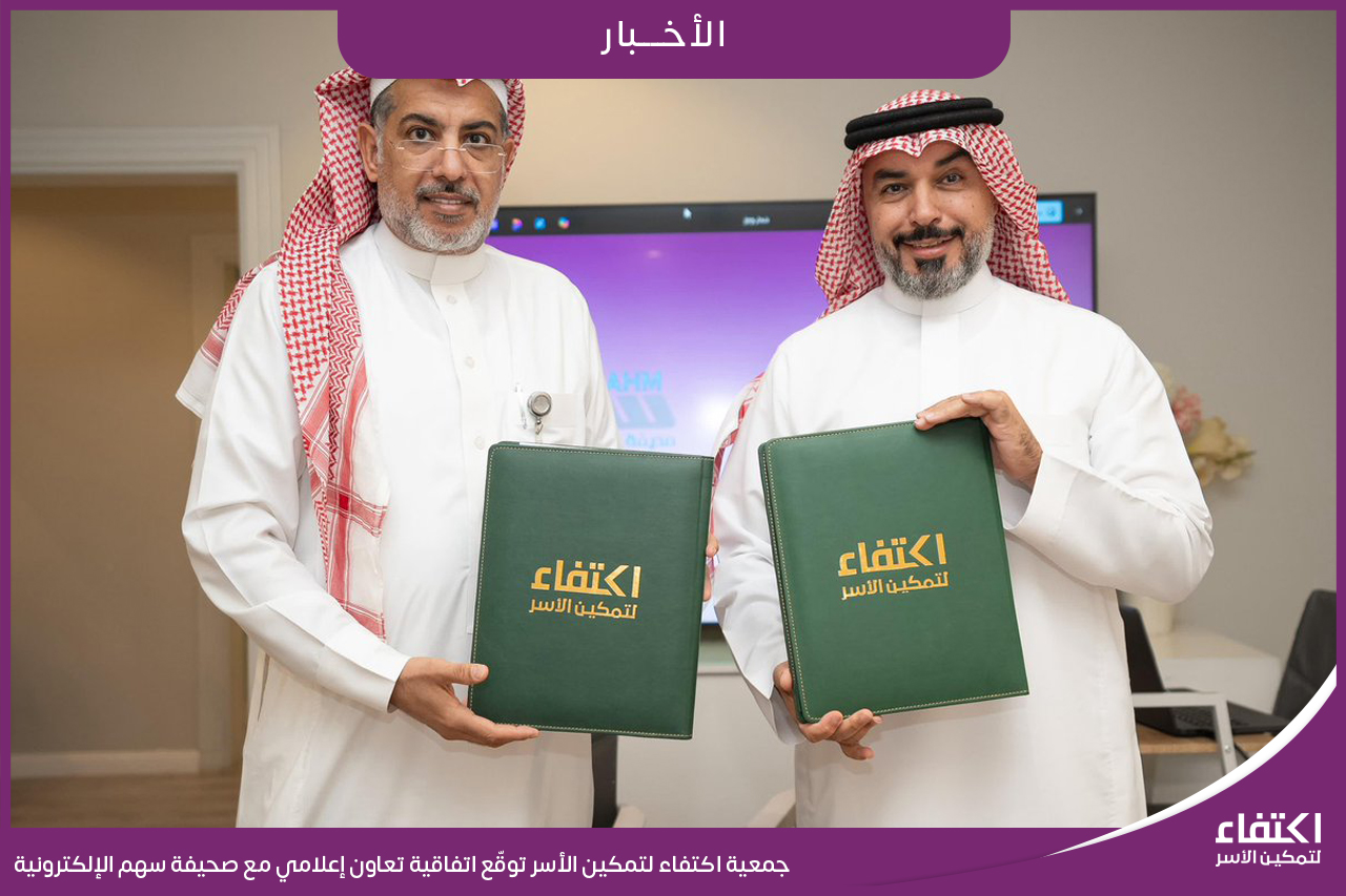 وقّعت جمعية اكتفاء لتمكين الأسر اتفاقية تعاون مع صحيفة سهم الإلكترونية، بهدف تعزيز النشر الإعلامي لبرامج الجمعية وإبراز جهودها التمكينية والمجتمعية، بما ينسجم مع مستهدفات رؤية السعودية 2030 في تمكين القطاع غير الربحي وتعزيز أثره التنموي وتأتي هذه الاتفاقية لتسليط الضوء على مبادرات الجمعية وبرامجها النوعية لدعم وتمكين الأسر، إضافة إلى إبراز قصص النجاح والنماذج الملهمة، بما يعزز الوعي المجتمعي ويدعم المشاركة الفاعلة في التنمية المستدامة.