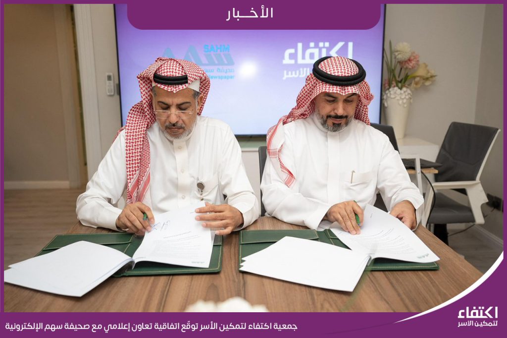 وقّعت جمعية اكتفاء لتمكين الأسر اتفاقية تعاون مع صحيفة سهم الإلكترونية، بهدف تعزيز النشر الإعلامي لبرامج الجمعية وإبراز جهودها التمكينية والمجتمعية، بما ينسجم مع مستهدفات رؤية السعودية 2030 في تمكين القطاع غير الربحي وتعزيز أثره التنموي وتأتي هذه الاتفاقية لتسليط الضوء على مبادرات الجمعية وبرامجها النوعية لدعم وتمكين الأسر، إضافة إلى إبراز قصص النجاح والنماذج الملهمة، بما يعزز الوعي المجتمعي ويدعم المشاركة الفاعلة في التنمية المستدامة.