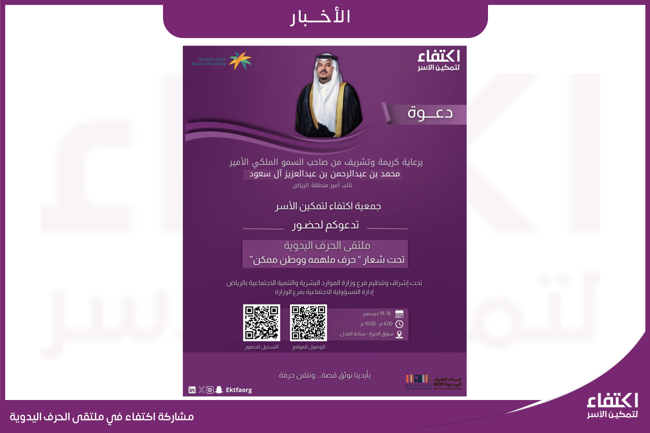 تستعد جمعية اكتفاء لإطلاق بودكاست اكتفاء الذي يقدم سلسلة من الحوارات الثرية مع نخبة من الخبراء في مجالات الموارد البشرية، الاستدامة المالية والتمكين المجتمعي سيتيح البودكاست للمستمعين التعرف على قصص نجاح ملهمة حلول عملية وتجارب واقعية تهدف لإلهامهم والمساهمة في صناعة أثر مستدام في حياتهم ومجتمعاتهم.