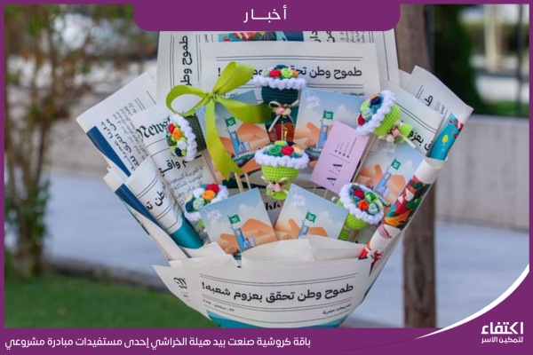 تشرفت جمعية اكتفاء لتمكين الأسر بتهنئة مؤسسة الملك خالد @KKFoundation بمناسبة اليوم الوطني 94 وتقديم باقة كروشية صنعت بيد هيلة الخراشي إحدى مستفيدات مبادرة مشروعي.