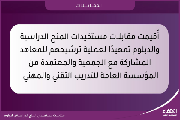 مقابلات مستفيدي المنح الدراسية والدبلوم المقابلات, جديدناBy adminمارس 22, 2025Leave a commentمقابلات مستفيدي المنح الدراسية والدبلوم